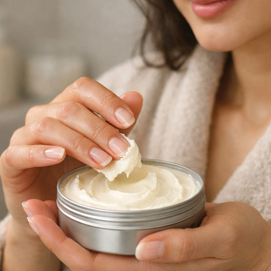 Use circular motions to massage the Body Butter into your skin.