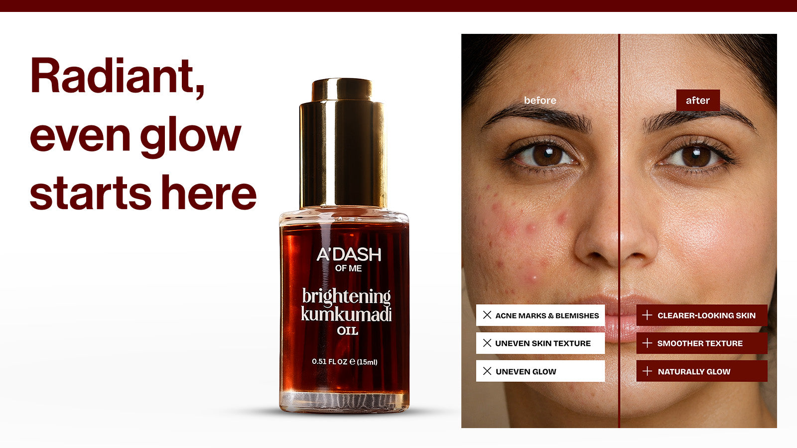 • Brightens & Evens Skin Tone – Saffron & Red Sandalwood enhance radiance and promote a uniform complexion.