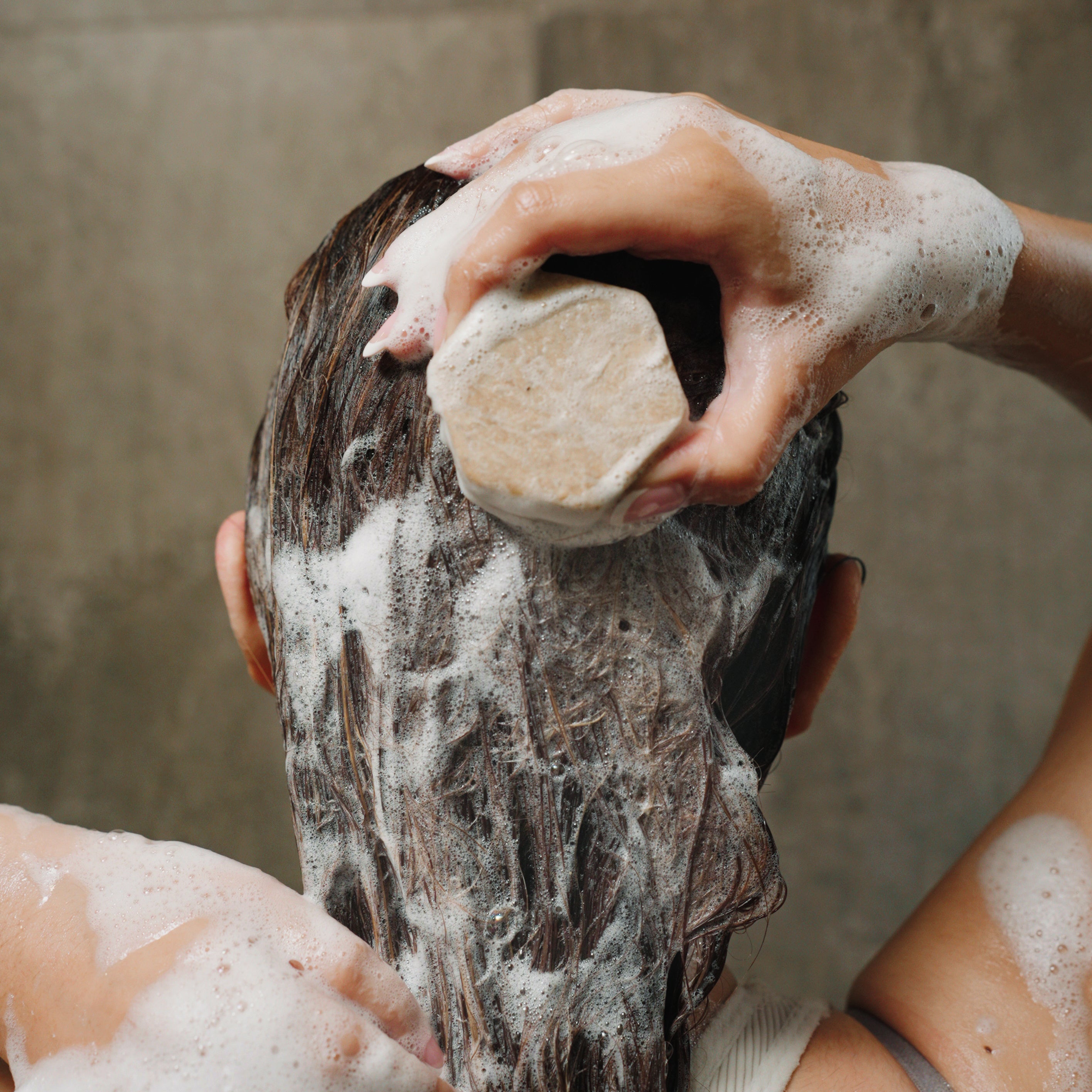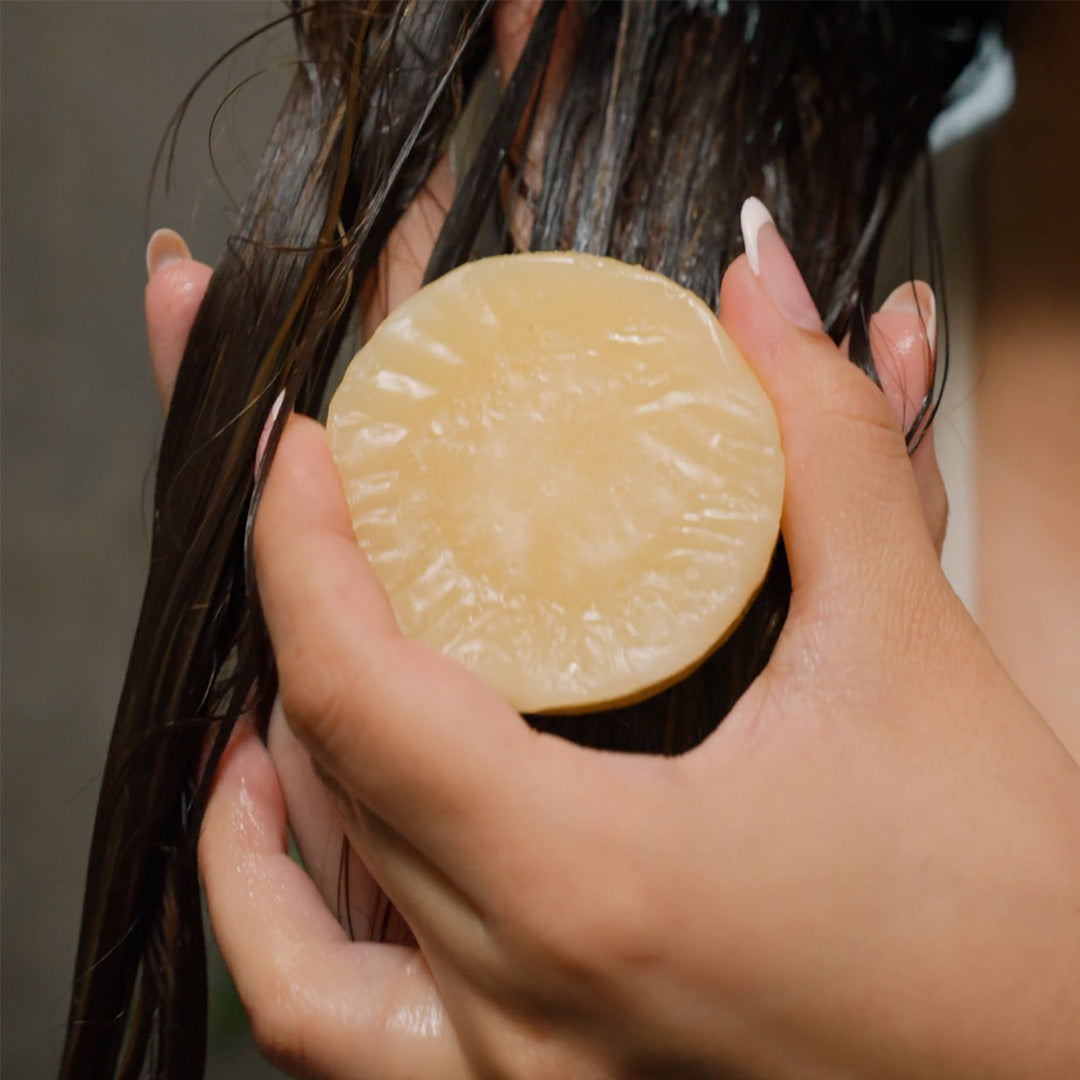 Rub the Clarifying Shampoo Bar between your hands or directly onto your scalp to create a gentle lather, then rinse.
