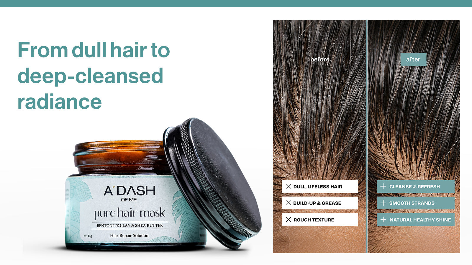Pure Clay Hair Mask deeply detoxifies the scalp and revitalizes hair by removing excess oil, impurities, and buildup helping restore shine, softness, and overall scalp health for stronger, healthier hair.